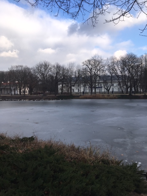 The next day was mostly outdoors. The main park of Warsaw is the Palac Na Wyspie – Lazienki Krolewskie. The lake was frozen surrounding the center of the park. Sadly, I did not have time to go inside the galleries of the palace, but I walked next to them. During the summer, there are a lot of music concerts, mostly Classic, and European.