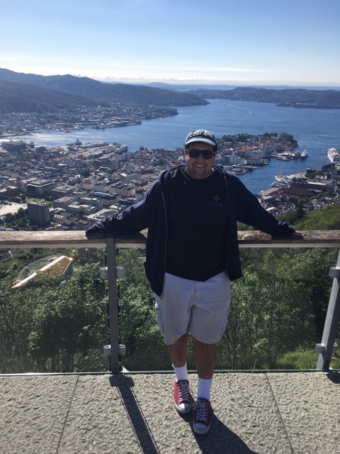 It was our last day in Bergen and the ship was scheduled to depart around dinner time. Utilizing these last hours of exploring, we took a bus through the tunnels up to another mountain for magnificent views. We stopped at very few locations because it was rainy. By the time we embarked the boat, we proceeded to our emergency stations for a drill to go over safety guidelines of the ship and to be aware of signals if something unexpected were to happen. After the drill, we had dinner and celebrated 29 years of togetherness with my parents. When the drill ended, the ship started to set sail for the Fjords.