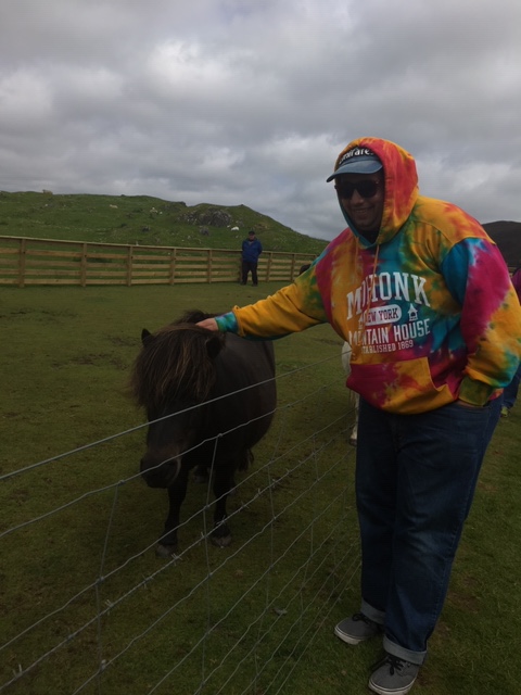 Upon our arrival to shore from the ship, we went on our first bus tour in the United Kingdom in Lerwick, Scotland. We traveled through huge landscapes with houses far from each other. Our first stop was at an enjoyable view of the Atlantic Ocean. It was very windy. At our last stop, we got to pet some lovely ponies. They are taken care of by two farmers who are married in live right up the hill. Then we drove back to the port where the Viking Jupiter tenders are docked to take passengers on and off the boat. While the rest of my family explored the town, I went back to the ship.