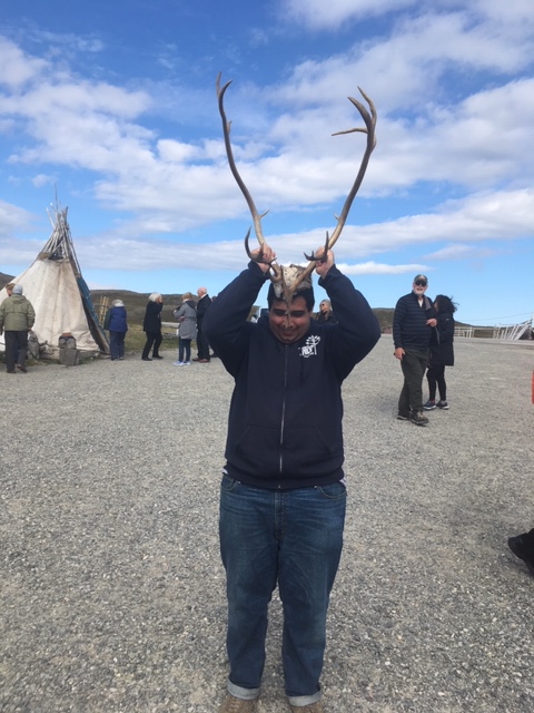 While driving through the road on the mountains, we saw reindeer moving all over the fields. Our first stop was at a small site with a souvenir shop and a tent with a lot of heat. After the quick stop, we drove to the end of the road to the Nordkapp Museum. It was super cold, windy and foggy. After going inside the building, I went all the way to the end of the landscape where another statue of the globe is located. Thankfully, I was able to get some good pictures, but I had to take my hat off since I did not want to lose it. During our time in the museum, we watched a brief film in the cinema discussing how the reindeer come into the Fjord and how animal workers help them with their lives. By the time we got out of the theatre, we went through a cave with Northern Lights depicting what happens during all four seasons.