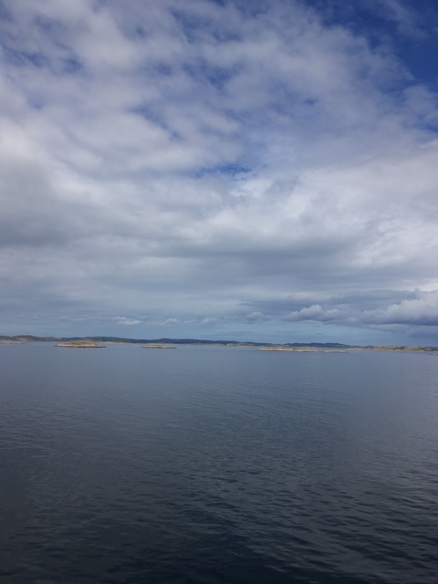 By the time we reached the Arctic Ocean, we sailed to Lofoten until the next morning. One hour before noon, we disembarked the ship for a two hour bus tour. During the ride, we traveled around high cliffs, small lakes, and a long tunnel to get to a beach, which was our first stop. The grass by the sand had several huge rocks to climb on and small rocks depicting different designs. In fact, people usually go camping at the beach during the summer when the weather is nice and warm. After spending fifteen minutes at the beach, we traveled back through the tunnel and went to a small art exhibition, which was our last stop. The art gallery is next to a dock where boats are built by construction workers. The paintings in the gallery reflect the community of Lofoten, designing the boats, birds flying around the shores, and mountains surrounding the lakes.