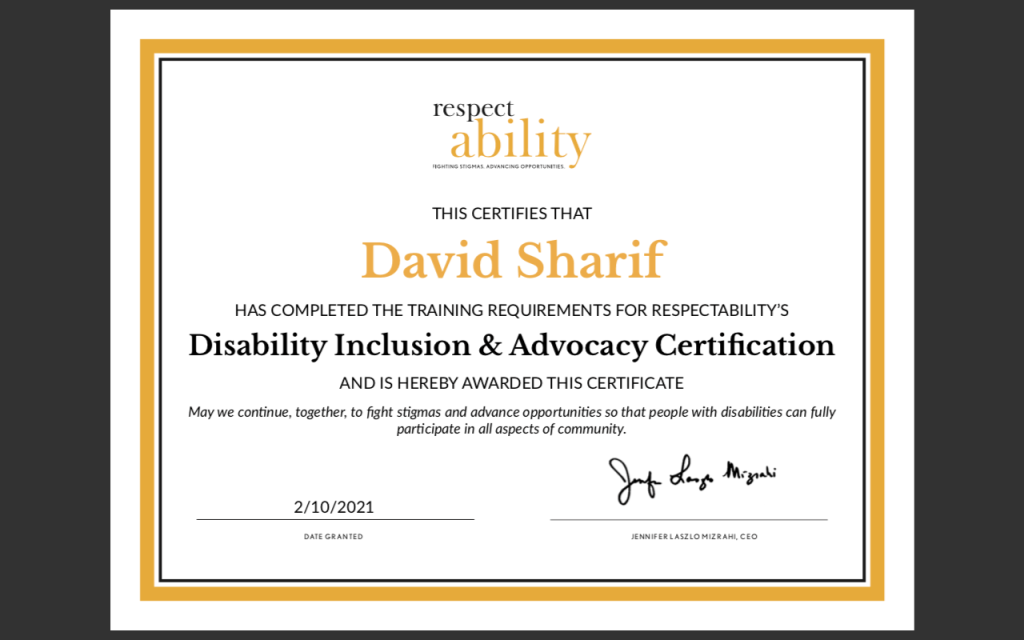 Accomplishments Autism Advocacy Blog PostsPandemic ManagementHealth AppointmentsPreparation and Success in the WorkplaceAdvice for a Successful College ExperiencePerseverance beyond BullyingThe ICA MottoHaving Role ModelsMisconceptions of the Autism SpectrumMy definition of AutismAccomplishmentsQuotesProjects Disability Inclusion & Advocacy Certification Undergraduate Research Grant Excellence Indelible Mark Student Award Autism Speaks Bronze Supporter Autism Speaks Leadership Award Tikkun Olam Leadership Award